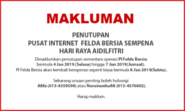 NOTIS PENUTUPAN PI SEMPENA HARI RAYA AIDILFITRI